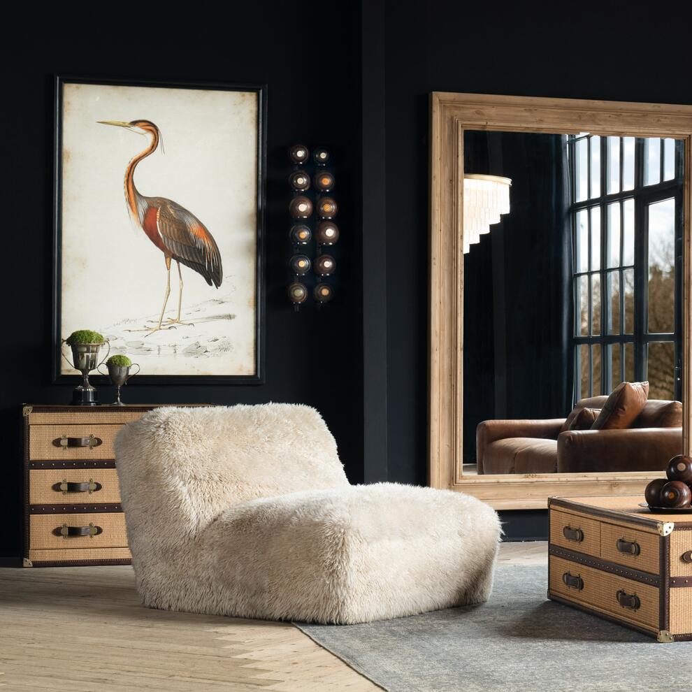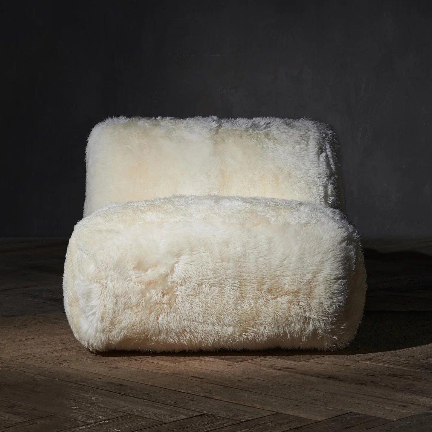 تأتي قاعدته وهيكله بخطوط عصرية ثابتة تُبرز جمال الفرو وتمنح الكرسي توازناً بصريًا فريدًا. كل لمسة على سطحه تشعر بالنعومة الفائقة