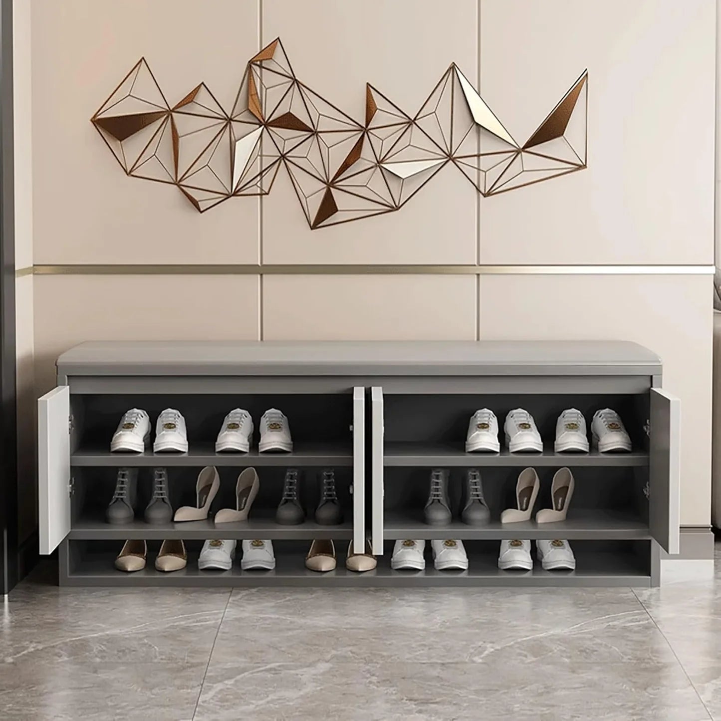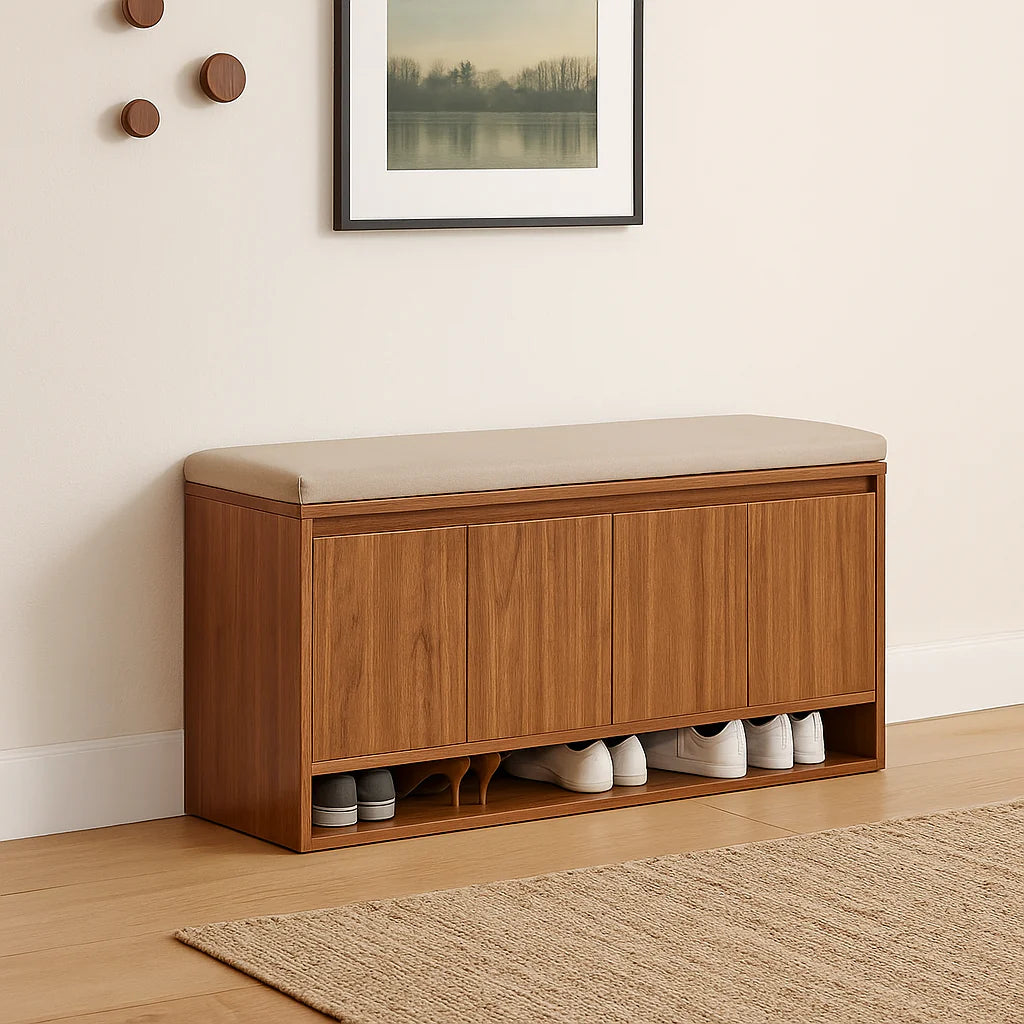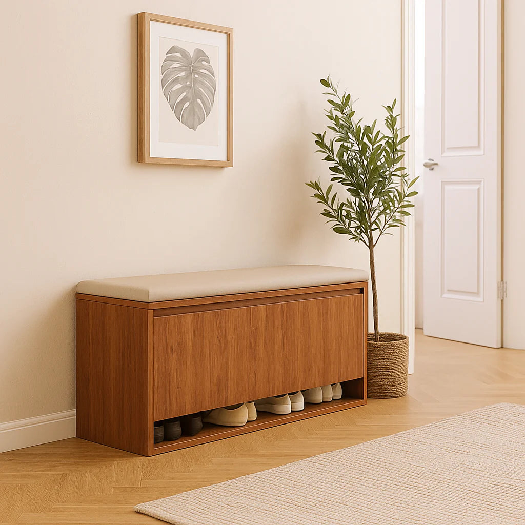 بانكيت عصري بتصميم أنيق توازن بين العملية والجمال، ما هي مجرد تخزين، بل قطعة ديكور ترفع من أناقة أي زاوية في بيتك. مزودة بمقعد بانكيت مريح يخليك تجهّز نفسك بكل راحة قبل الخروج، وفي نفس الوقت توفر مساحة تخزين بأبواب أنيقة تخفي الفوضى وتحافظ على مظهر فاخر