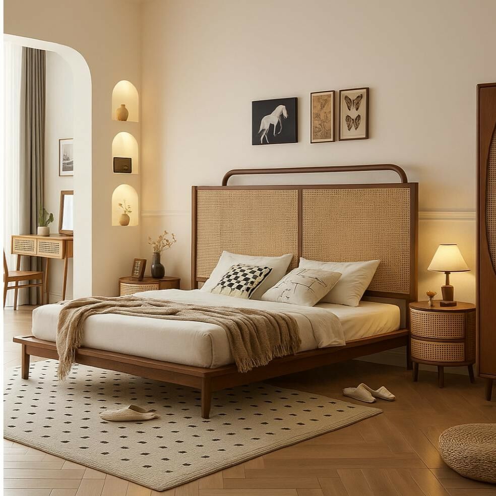 سرير ينساب حضوره بهدوء داخل الغرفة، بتصميم عصري يمنحك مساحة من الطمأنينة والراحةبفضل متانه الخشب وتفاصيله الهادئة تخلق بيئة مثالية للنوم العميق والاسترخاء. صُمم ليمنحك إحساسًا ناعمًا بالرفاهية ولحظات نوم مريحة تعيد لك نشاطك كل يوم، مع حضور أنيق يضفي على المكان لمسة من السكون والجمال