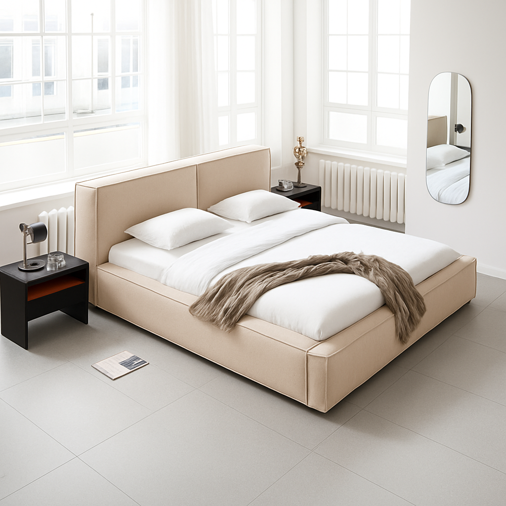 سرير روزا العصري يتميز بأناقته المذهلة وتصميمه الفريد الذي يجمع بين الأناقة والوظائف العملية يتميز بتصميم متقن يجمع بين المواد عالية الجودة والتفاصيل الدقيقة لخلق تجربة فاخرة للنوم. كما يتمتع السرير بملمس ناعم ومريح يدعو للراحة والاسترخاء