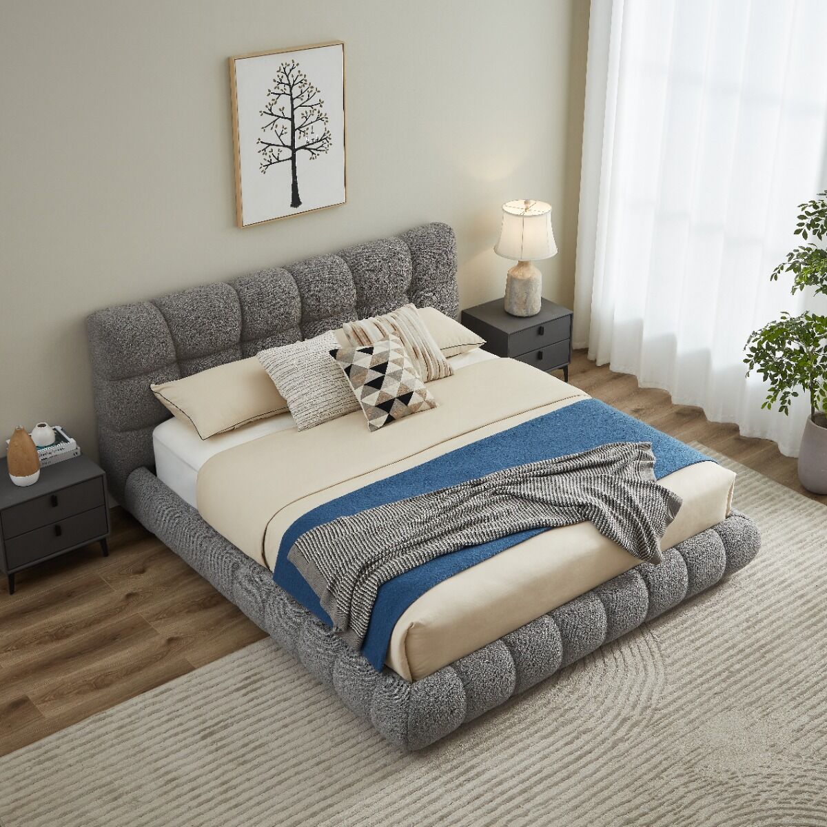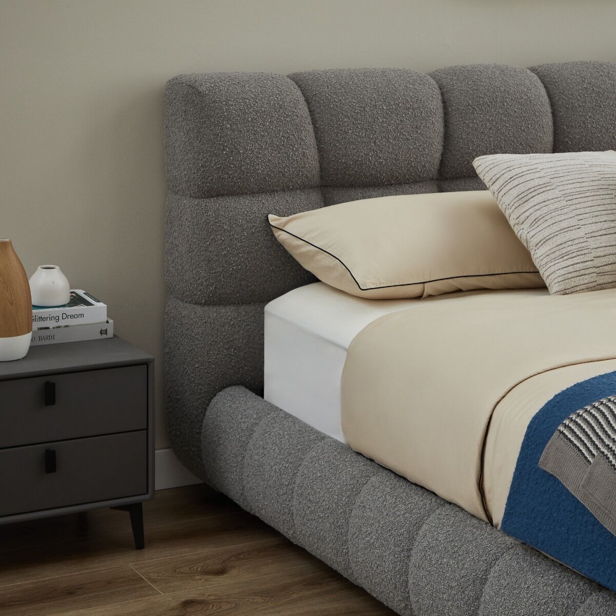 سرير فاخر بتصميم أنيق يعبّر عن الذوق الرفيع بأسلوب يجمع بين الراحة والرقي. يتميز بتفاصيل متقنة وخامات عالية الجودة تمنحه متانة تدوم وجمالاً يلفت الأنظار. يضفي حضوراً دافئاً على غرفة النوم ويمنح تجربة نوم مريحة تنبض بالفخامة والسكينة، ليكون العنصر الذي يكمّل أناقة المكان بروحٍ من الرفاهية والتميز