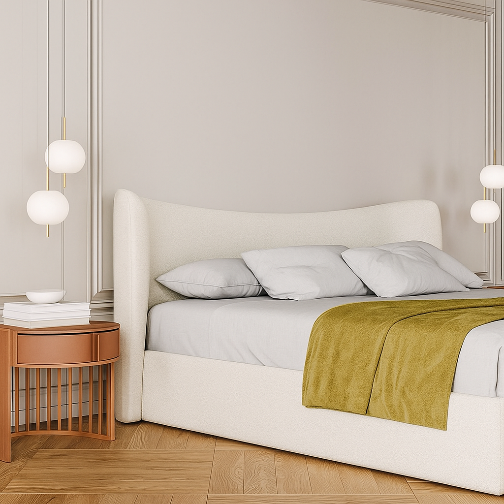 سرير بتصميم راقٍ يجمع بين البساطة العصرية والفخامة الإيطالية في تناغم مثالي. يتميز بخطوطه الأنيقة وتفاصيله الهادئة التي تضفي إحساسًا بالسكينة والرقي على غرفة النوم. صُنع من خامات عالية الجودة تضمن المتانة والراحة ليمنحك تجربة نوم فاخرة تعكس ذوقًا راقيًا وتحوّل غرفتك إلى مساحة تنبض بالأناقة والدفء