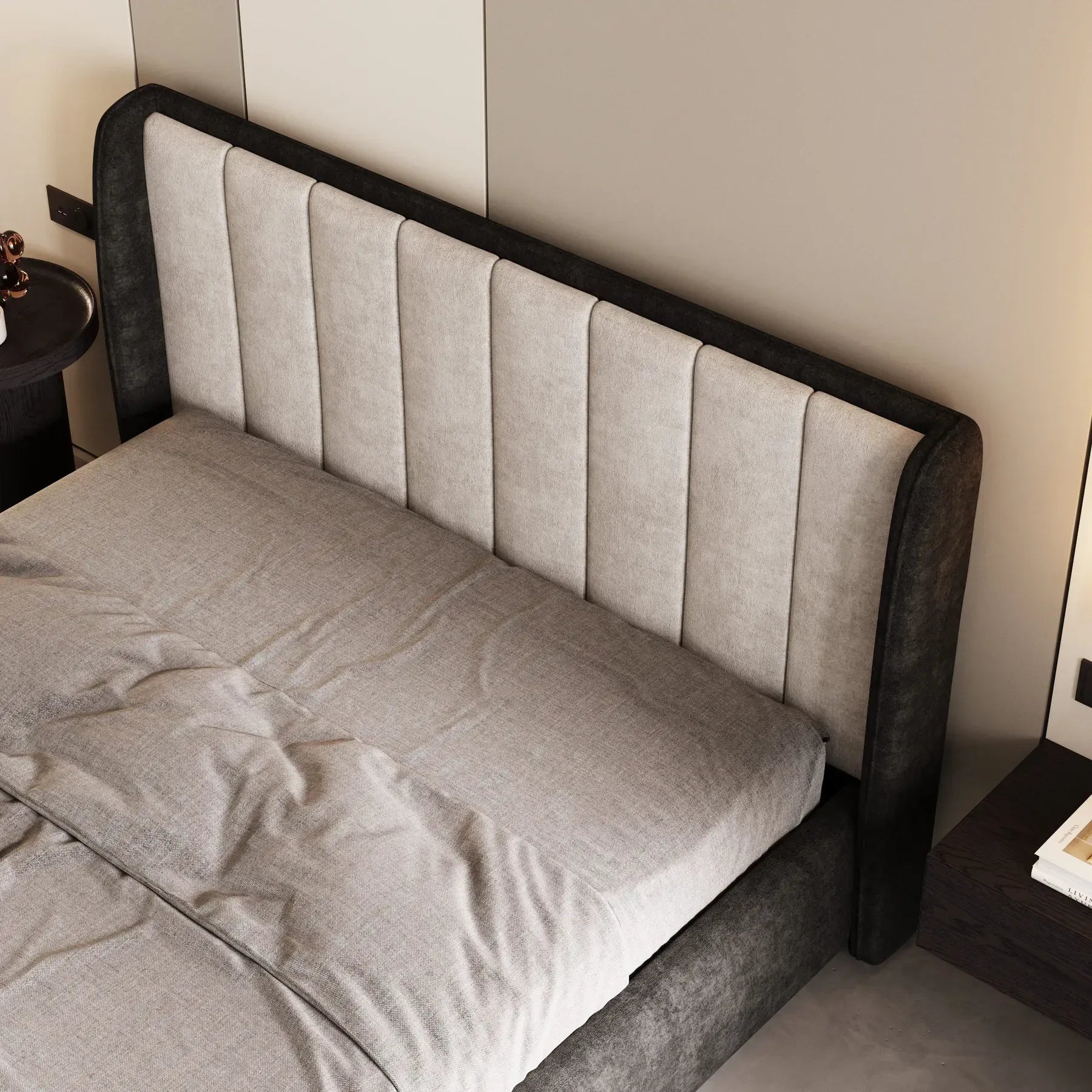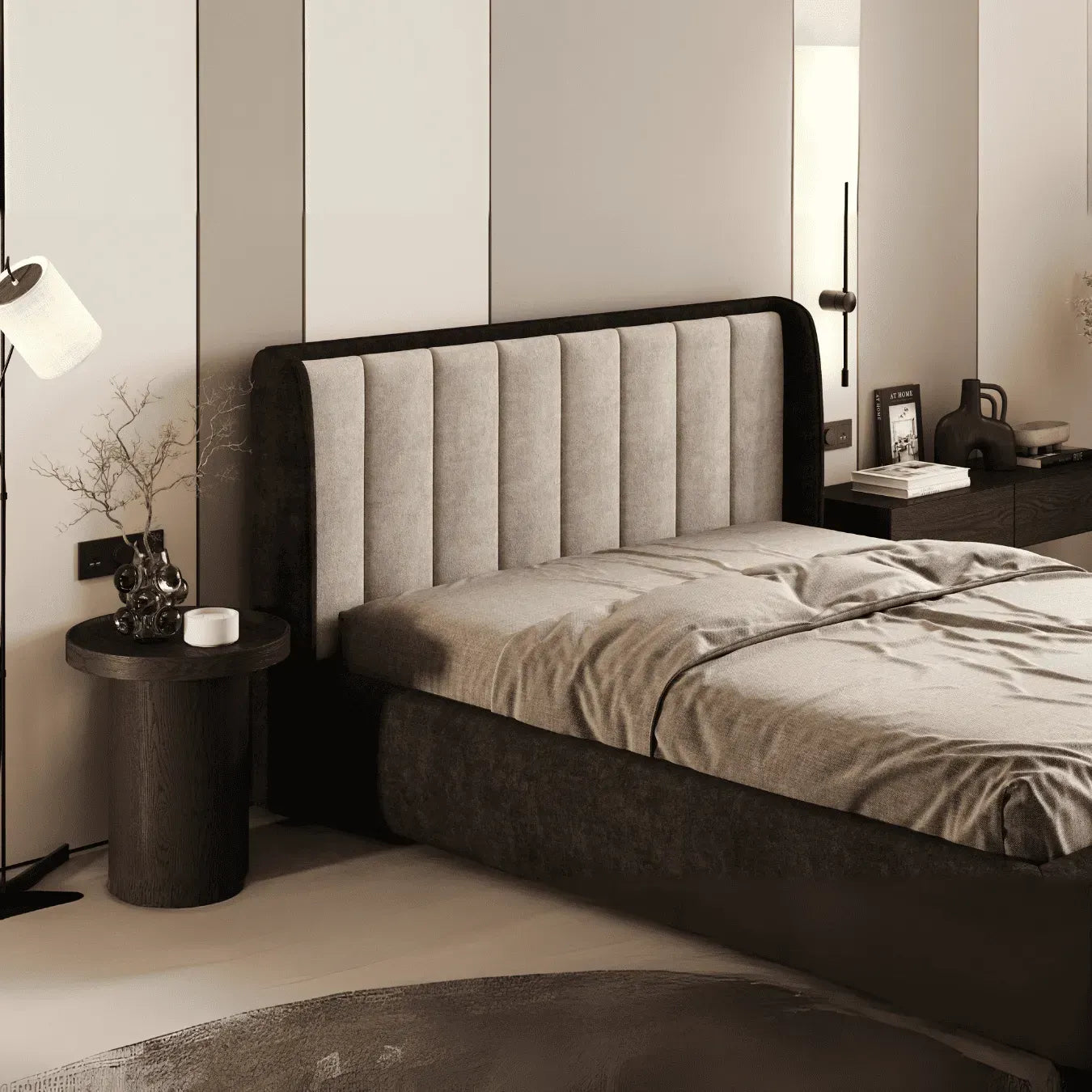 سرير يجمع بين الفخامة والراحة بتصميم عصري أنيق يضفي لمسة مميزة على غرفة نومك. يتميز بخطوطه الانسيابية وتفاصيله المتقنة التي تمنح الغرفة مظهرًا متوازنًا وراقيًا. مصنوع من خامات عالية الجودة تضمن المتانة والثبات لسنوات طويلة، مع تنجيد ناعم يوفر راحة استثنائية وتجربة نوم هادئة ومريحة. قطعة مثالية تضيف إحساسًا بالدفء والرقي في كل زاوية من غرفتك