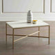 طاولة قهوة مربعة بتصميم عصري فاخر تجمع بين الجرأة والفخامة في توازن مثالي. سطحها المصنوع من بديل الرخام يمنحها لمسة راقية ولمعان يلفت الأنظار، بينما يضيف الهيكل المعدني الأنيق إحساس بالقوة والثبات بأسلوب فني جذاب. تصميمها المربّع يعطي حضور هندسي مميز يضفي ترتيب وأناقة على المكان
