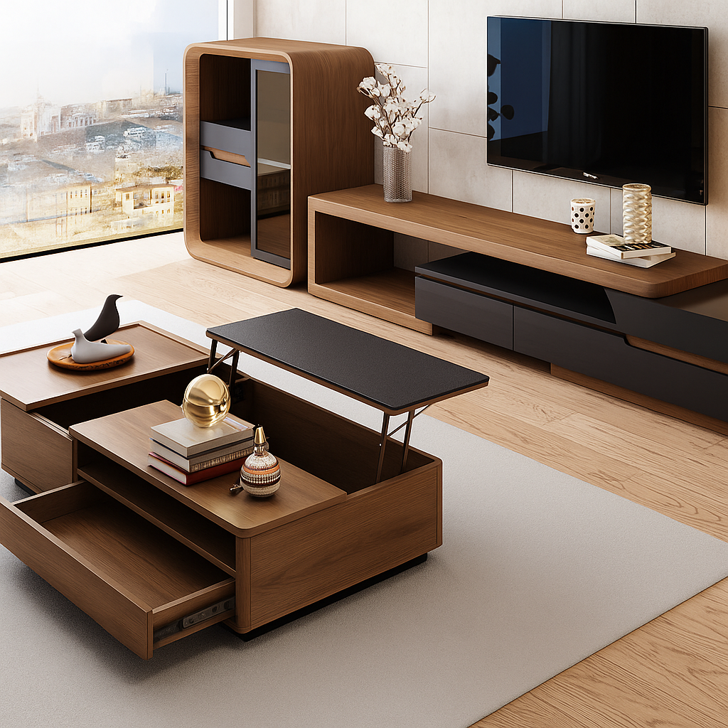 طاولة قهوة بتصميم راقٍ يجمع بين الجمال العملي والفخامة العصرية. تفاصيلها المتقنة وخطوطها الانسيابية تعكس ذوقاً راقياً يعزز أناقة غرفة المعيشة. توفر مساحة متعددة الاستخدام تمنحك ترتيباً أنيقاً ووظائف ذكية في آنٍ واحد، مما يجعلها قطعة مثالية تجمع بين الراحة والذوق الرفيع. حضورها المتوازن يضفي لمسة دفء وفخامة على المكان لتصبح محور الجلسة بجدارة