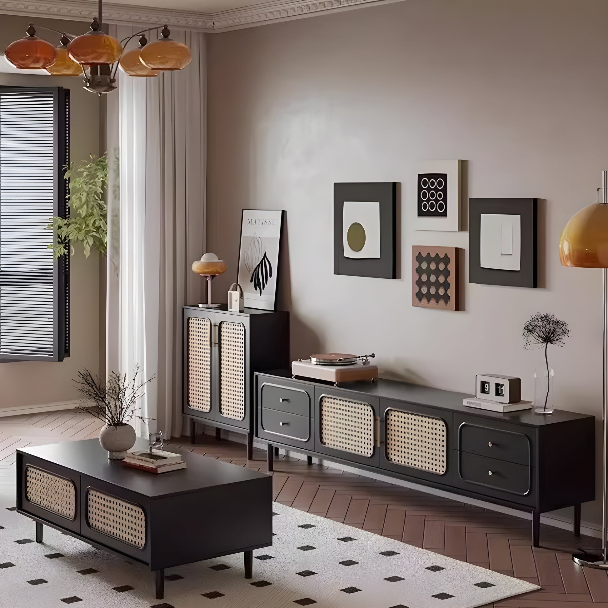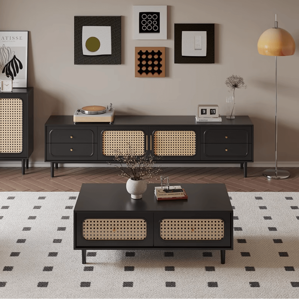 طقم متكامل بتصميم مودرن يجمع بين طاولة التلفاز وطاولة القهوة ليمنح غرفة المعيشة حضورًا متناسقًا وفخمًا. يبرز جاذبيته من خلال تناغم اللمسات العصرية والتشطيبات الراقية التي تضيف للمكان لمسة دفء وأناقة. طاولة التلفاز تأتي بشكل يعزز ترتيب المساحة ويُظهر ذوقك في اختيار التفاصيل، بينما تكملها طاولة القهوة بتصميم عملي يمنح الغرفة نقطة مركزية أنيقة