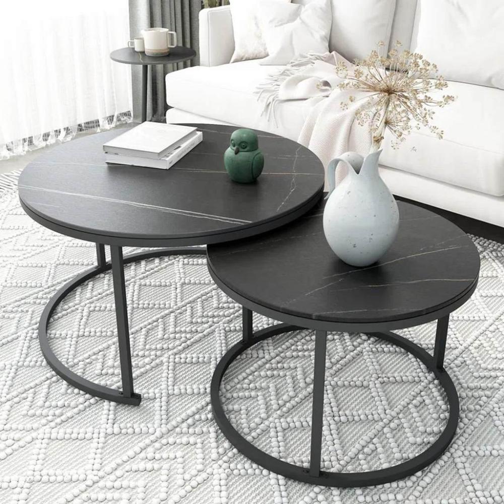 طقم طاولات قهوة بتصميم فاخر يجمع بين الحداثة والفخامة في تناغم أنيق. يضم طاولتين بهيكل معدني متين يمنح إحساس بالقوة والثبات، وسطح بملمس بديل الرخام الفاخر يضيف لمسة ترف وأناقة للمكان. تصميمه العملي يسمح بتنسيق مرن يناسب مختلف المساحات، لتكون القطعة اللي ترفع من فخامة الجلسة وتكمل ديكورك بذوق راقٍ يعكس أسلوبك المميز