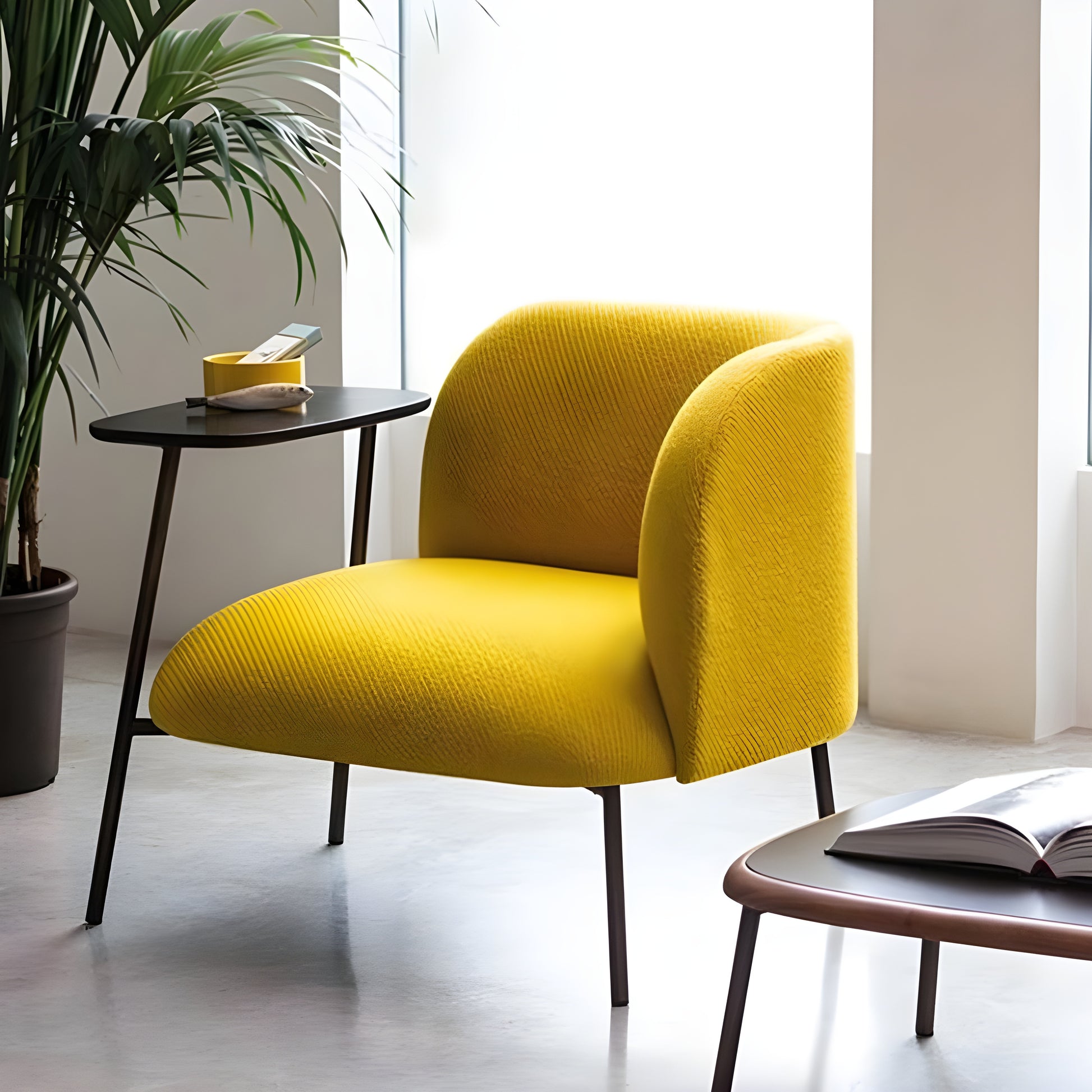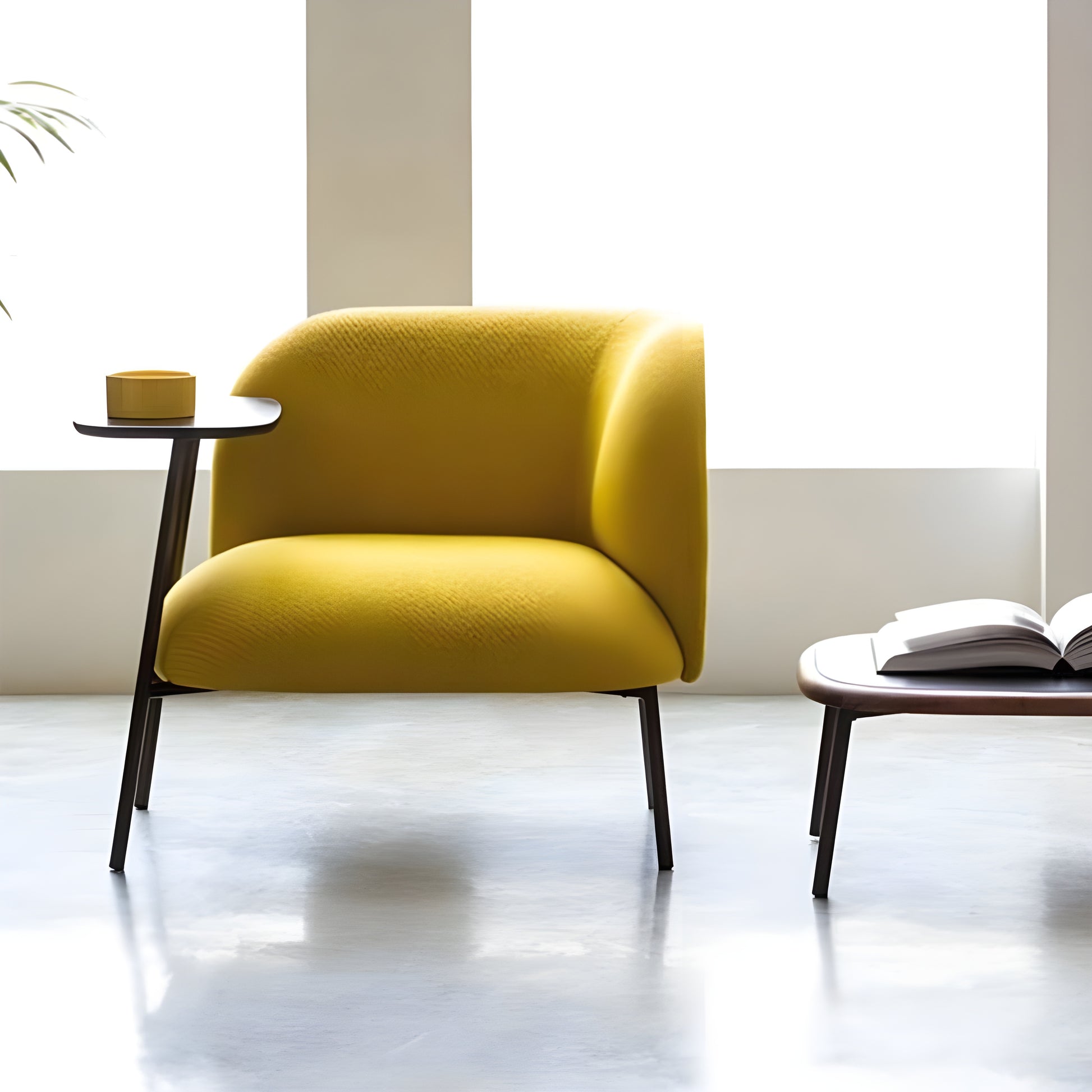 كرسي أنيق مع مسند بتصميم متناغم يجمع بين الفخامة والبساطة بأسلوب عصري راقٍ. مع الطاولة الجانبية ليشكّلا معاً ثنائياً يضفي لمسة توازن وأناقة على أي مساحة. قطعة تعبّر عن ذوق متفرّد يقدّر التفاصيل الراقية ويجمع بين الراحة والمظهر الجمالي في آنٍ واحد، لتكون إضافة مثالية تعكس أسلوب حياة مفعم بالفخامة والانسجام