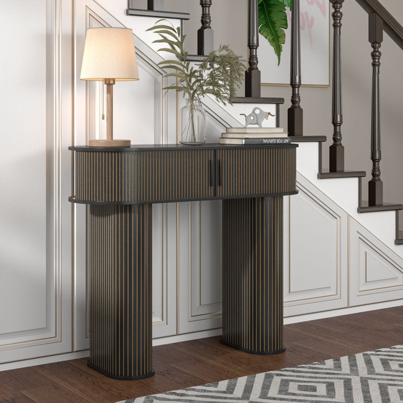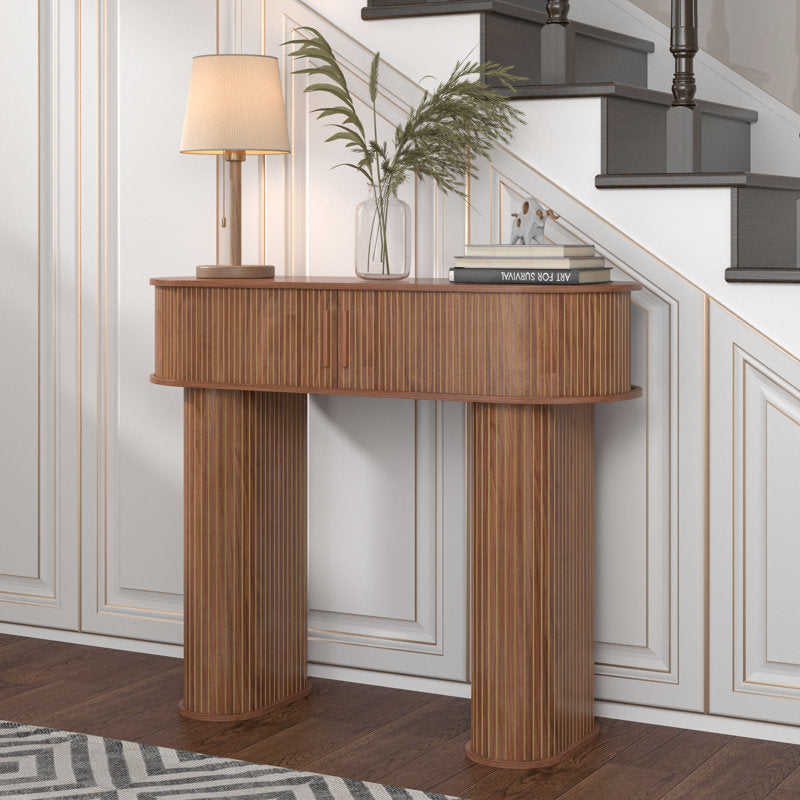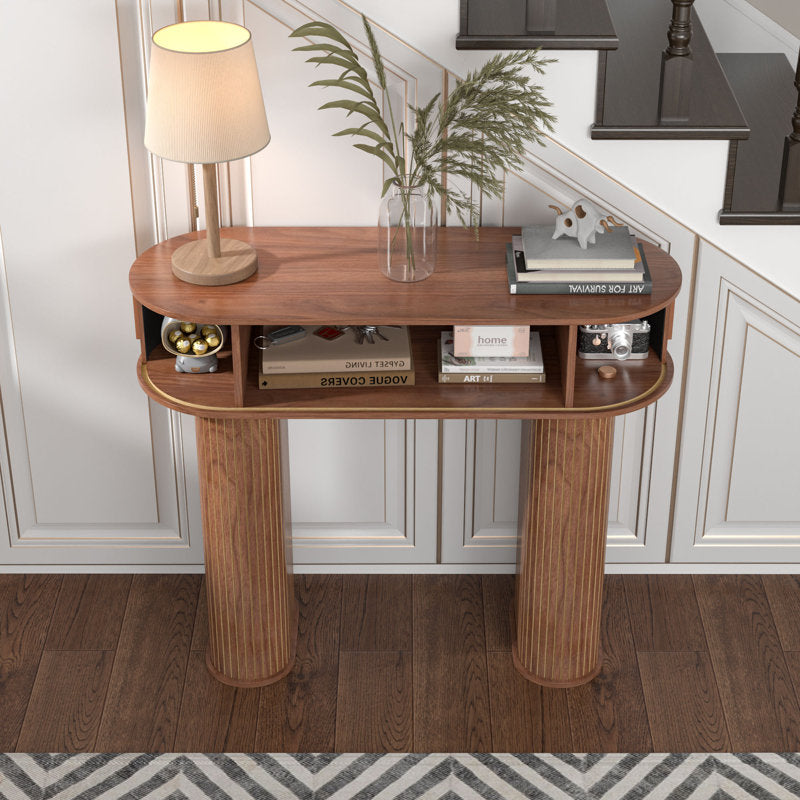 كونسول خشبي عصري مصمم لإضفاء لمسة من الأناقة على مساحتك. بتصميمه الأنيق والعملي، يحتوي على رفوف مفتوحة لتخزين الكتب والإكسسوارات، مع أرجل أسطوانية تضيف له لمسة من الفخامة. مصنوع من الخشب عالي الجودة ، مثالي للمداخل، غرف المعيشة أو أي مساحة تحتاج لمسة ديكور مميزة وأنيقة.