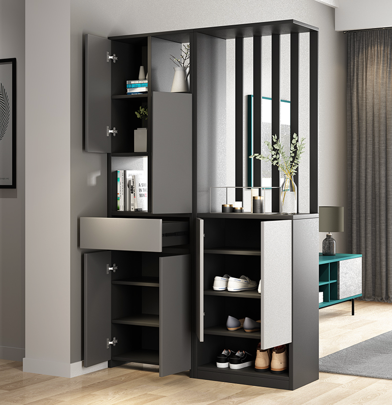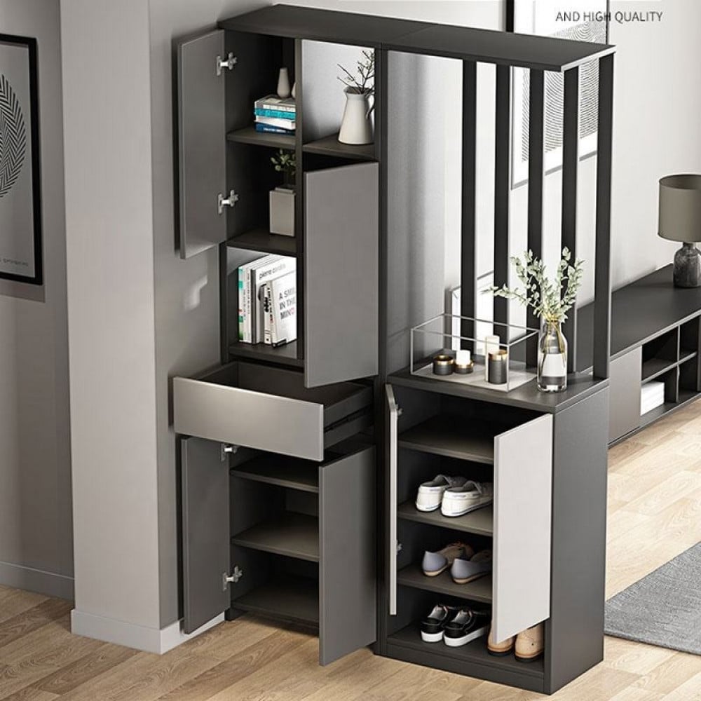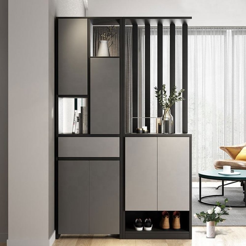 حاجز جداري مذهل مصمم بدقة مع خزانة مدمجة. يجمع هذا الحاجز بين الجمال والوظائف العملية، مما يجعله إضافة أساسية لأي منزل يسعى للتصميم الراقي تمتاز الخزانة بتصميم فريد مع مساحة كافية لتخزين أغراضك